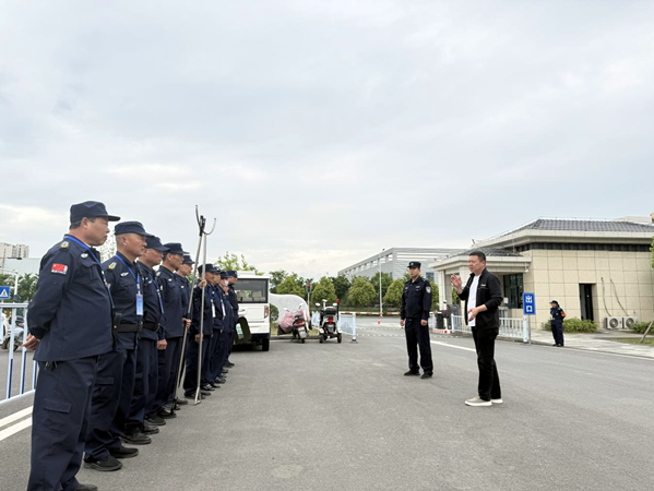 演练开始前,两位警官向安保队员讲解了反恐防暴器材的使用方法、暴恐突发事件的处置原则和协同应对流程,重点强调了保持安全戒备、快速反应控场、规范使用器械的注意事项。