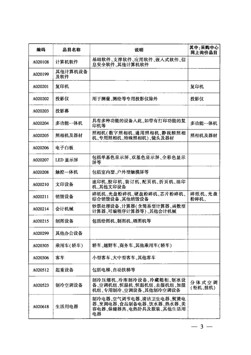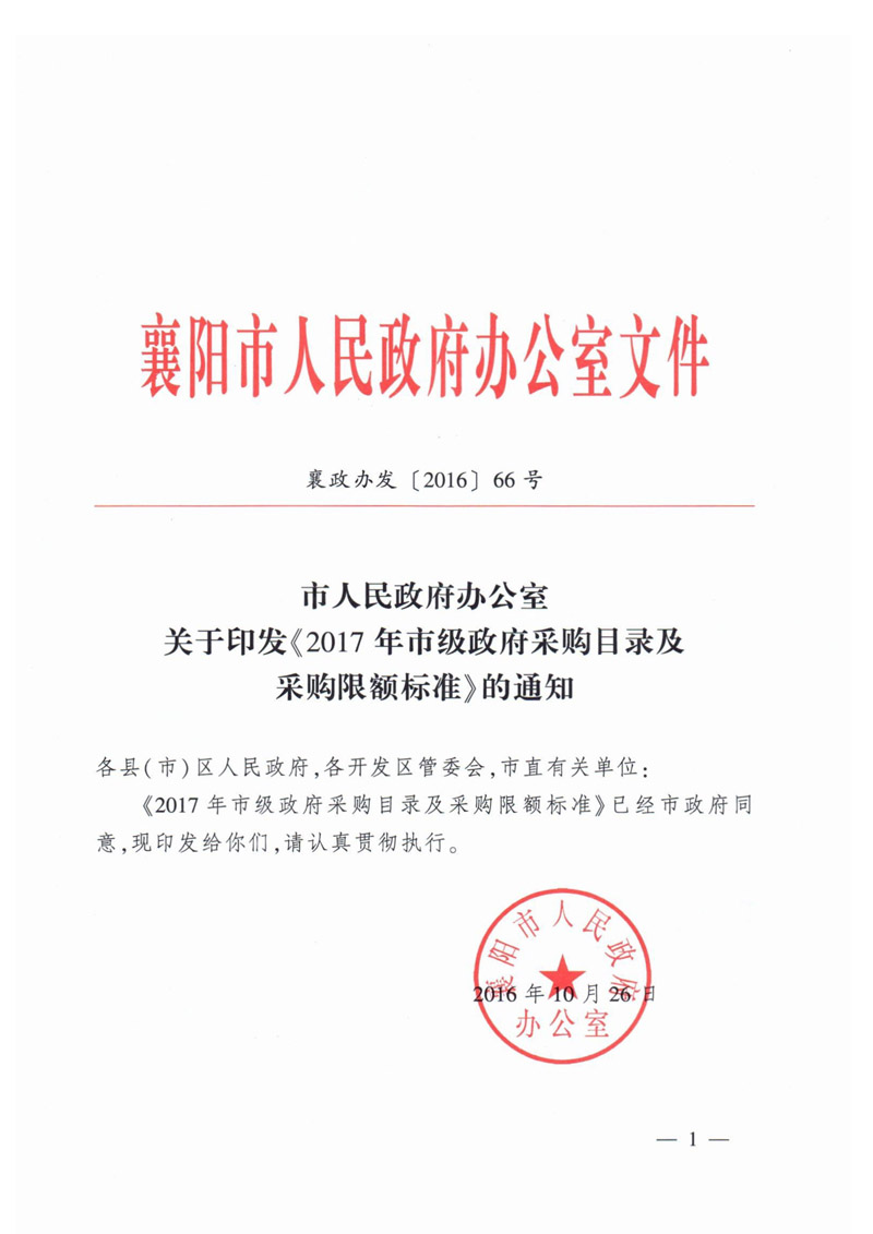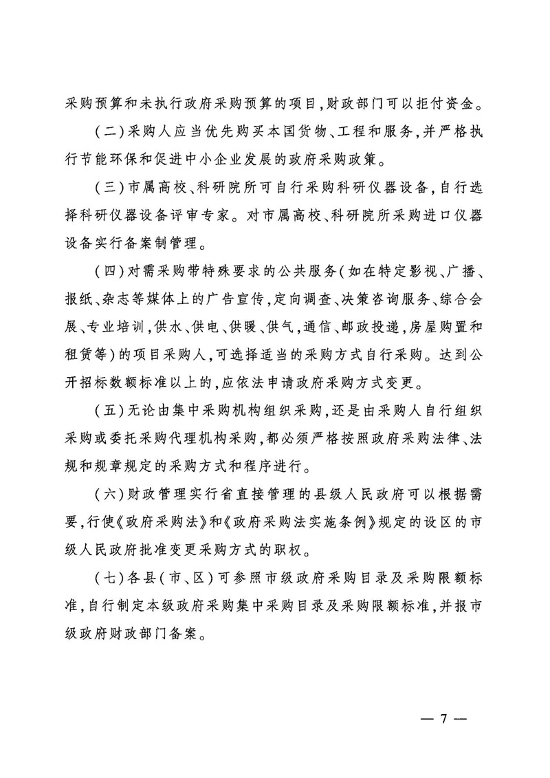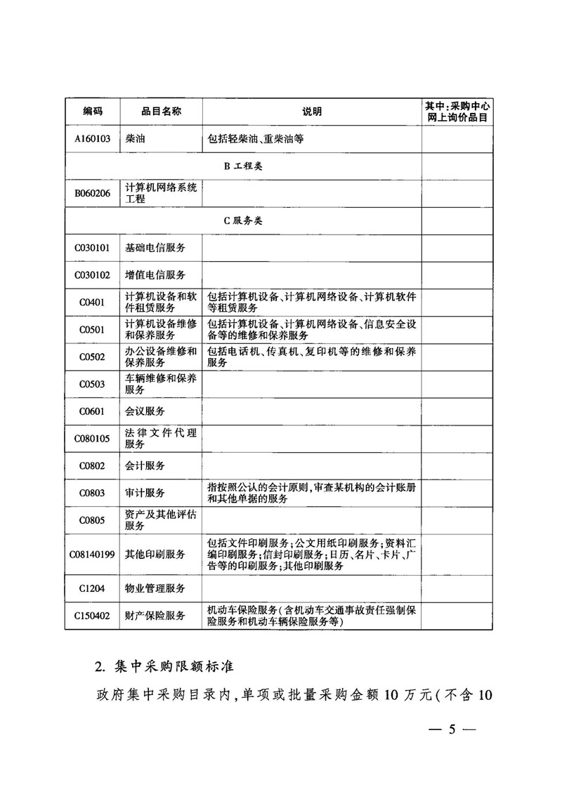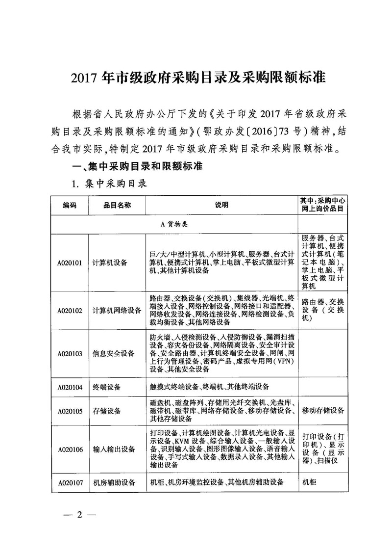 2017年市级政府采购目录及采购限额标准
