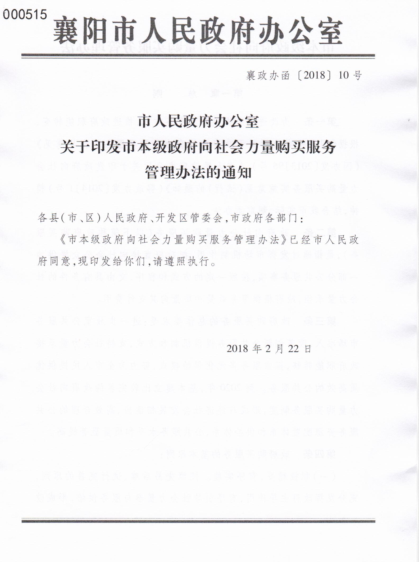 转发襄阳市政府办公室文件:关于印发市本级政府向社会力量购买服务管理办法的通知