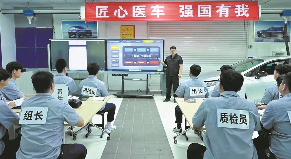 赛场之外,刘翔将“实战精神”融入日常课堂。把“汽车车间”搬进教室,汽车实训室的后方,停放着多辆拆卸程度不同的小轿车,学生刚学完维修检测理论,转身就能上手实操。