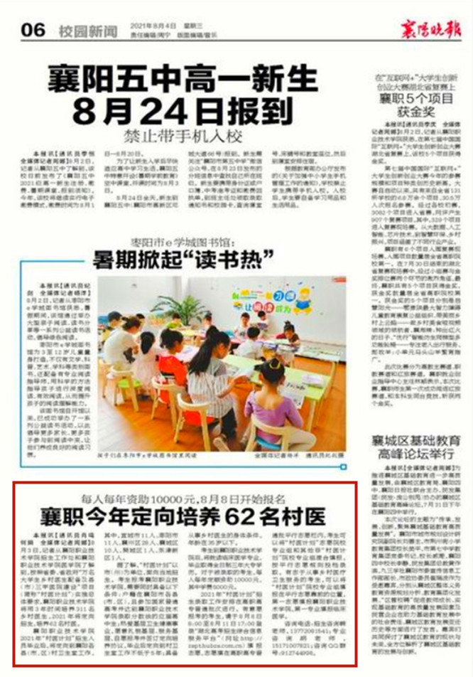 转自《襄阳晚报》数字报> 2021年08月04日> 6版-校园新闻