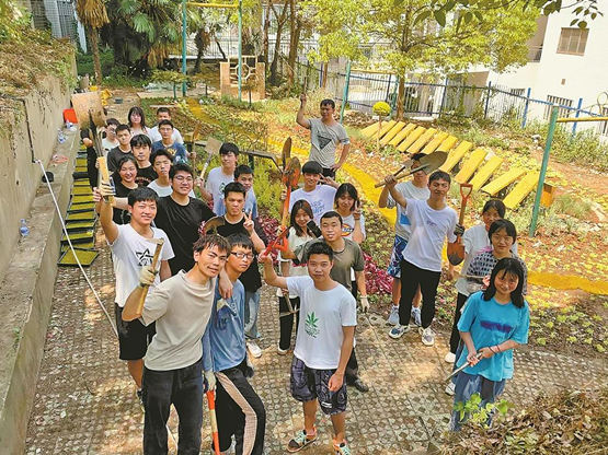 记者看到,同学们建成的小花园与原有地形融为一体,栽种的植被层次丰富。行走在碎石板铺成的路面上,微风吹过,令人心旷神怡。