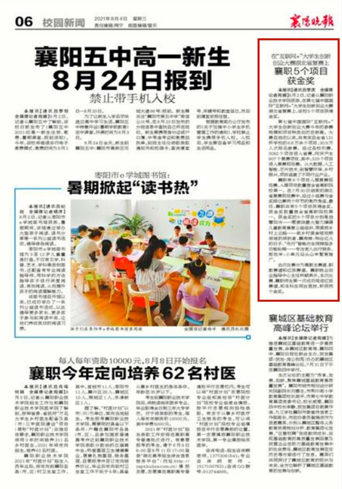 转自《襄阳晚报》数字报> 2021年08月04日> 6版-校园新闻