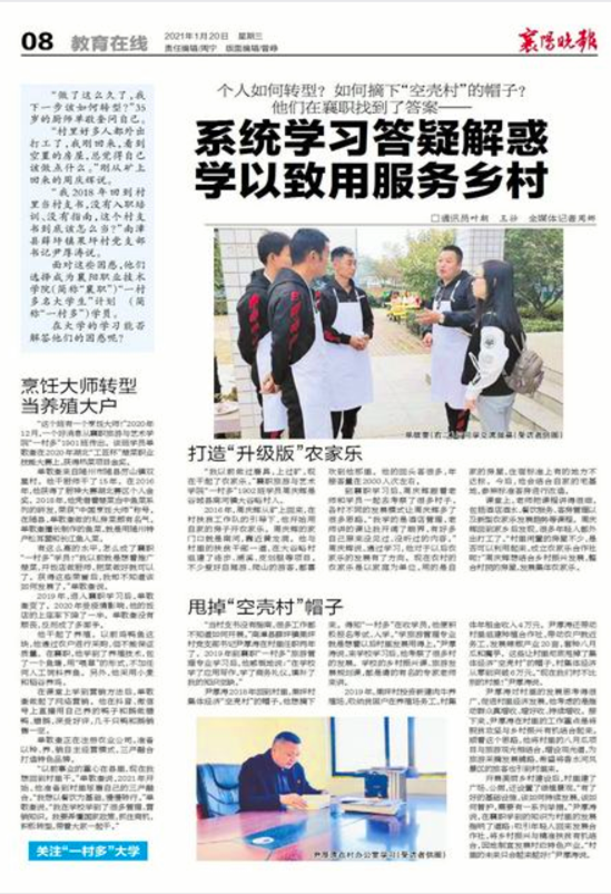 面对这些困惑,他们选择成为襄阳职业技术学院(简称“襄职”)“一村多名大学生”计划 (简称“一村多”)学员。