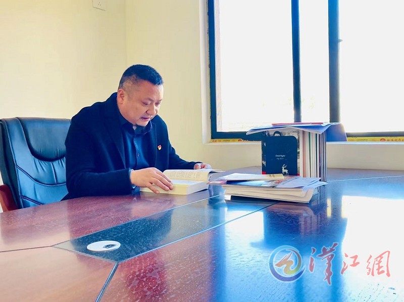 尹厚涛在村办公室学习(受访者供图)