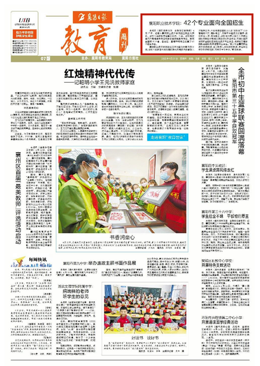 本报讯(通讯员韩向东 全媒体记者周娜)4月17日,记者从襄阳职业技术学院招生就业处获悉,该校今年的招生简章已出炉。今年,该校招收省内外普通高考考生和湖北省技能高考考生,面向全国的18个省、自治区、直辖市的考生设置了42个招生专业。