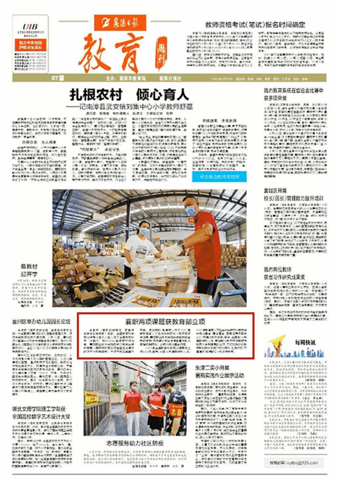 本报讯(通讯员杨明海 罗世炜 全媒体记者周娜)日前,全国教育科学规划领导小组办公室公布了全国教育科学“十四五”规划2022年课题立项名单,襄阳职业技术学院陈新文教授主持的课题《高职院校服务技能型社会建设的动力与机制研究》立项为教育部重点项目。与此同时,教育部公示了2022年度教育部人文社会科学研究一般项目评审结果,襄阳职业技术学院余荣宝教授主持的课题《县域融合教育资源配置策略与保障机制研究》立项为规划基金项目。
