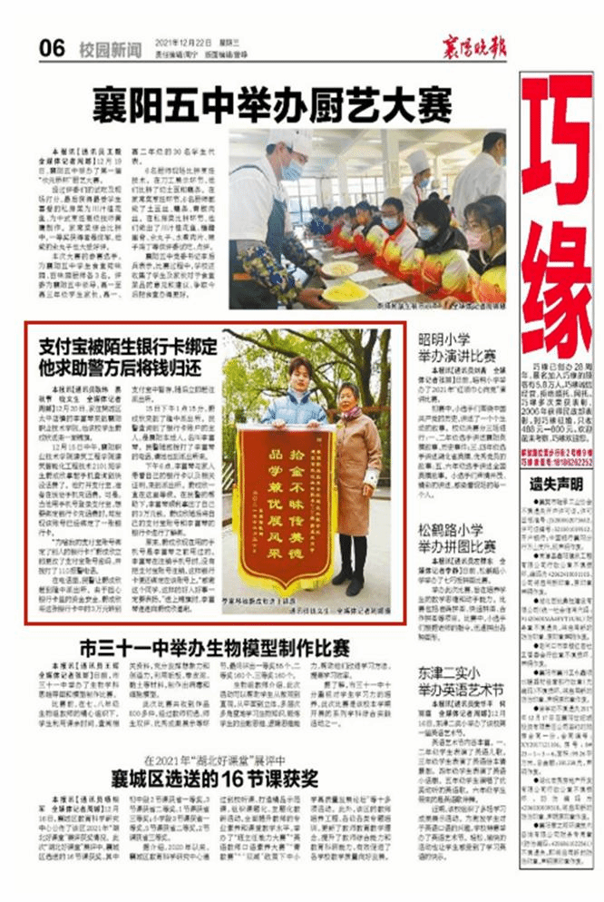 转自《襄阳晚报》2021年12月22日星期三6版